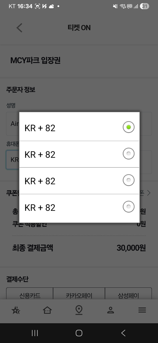 진행중[DEV][웹뷰 관련][티켓 ON, 체험 ON][상용 동일] 휴대폰 번호 선택 박스의 경우 똑같은 옵션만 여러개 표시 중